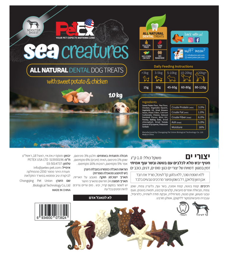 יצורי ים – חטיף דנטלי לכלב בצורת יצורי ים, 1 קג PETEX